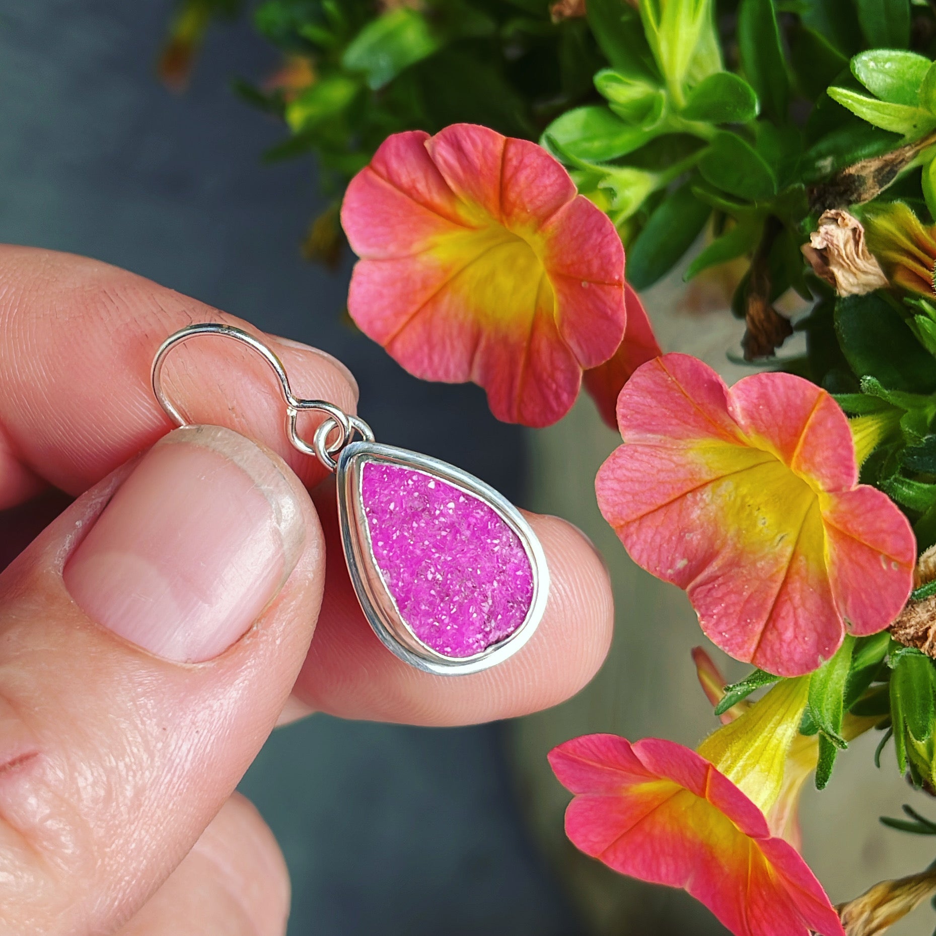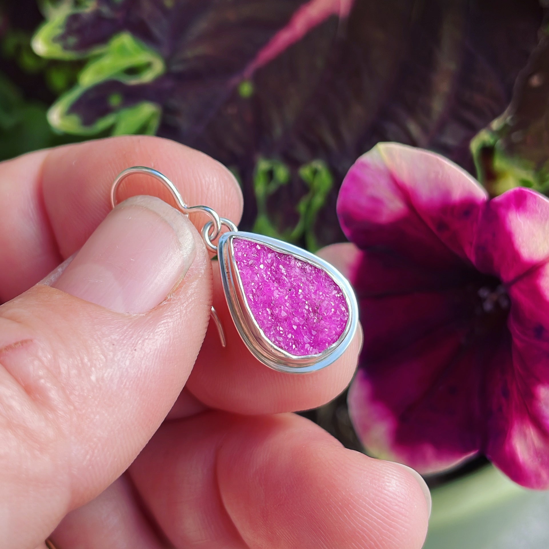 Cobalto Calcite (Congo) and sterling silver earrings. Approximate dimensions are 11/16"L x 1/2"W.
