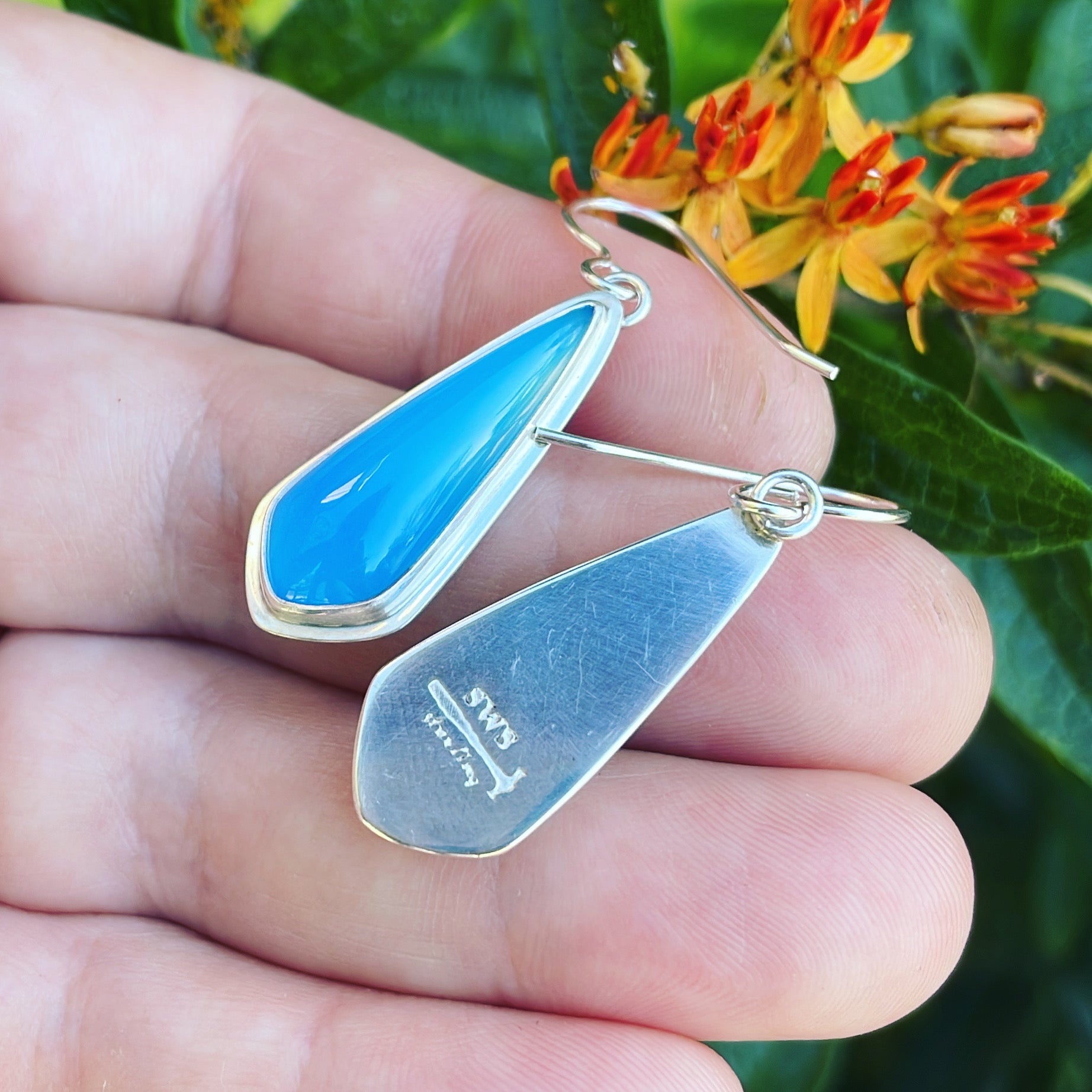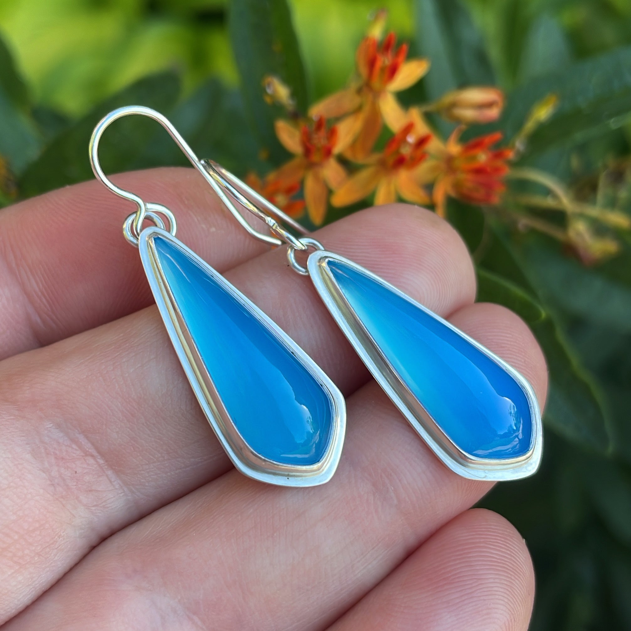High quality Ice Agate (Germany) and sterling silver earrings. Approximate dimensions are 1-1/8"L x 1/2"W.
