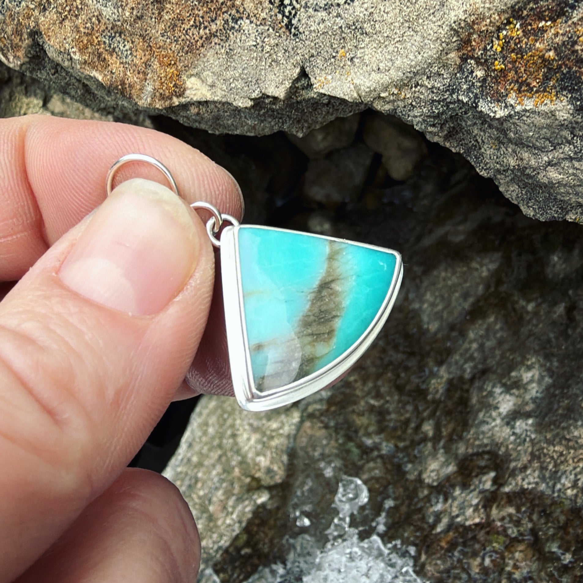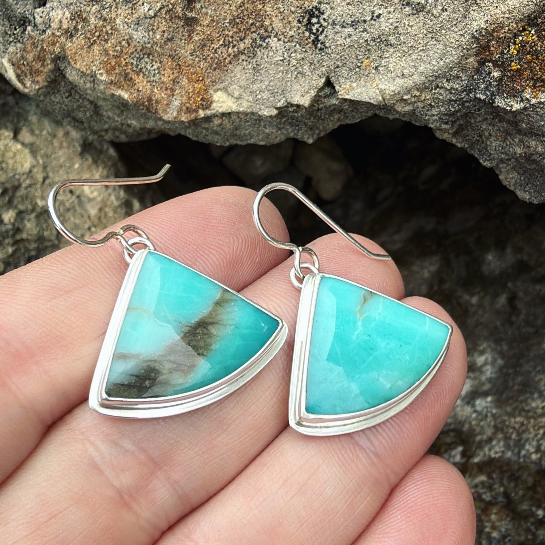 Opalized wood (Indonesia) and sterling silver earrings. Approximate dimensions are 7/8"W x 3/4"L.