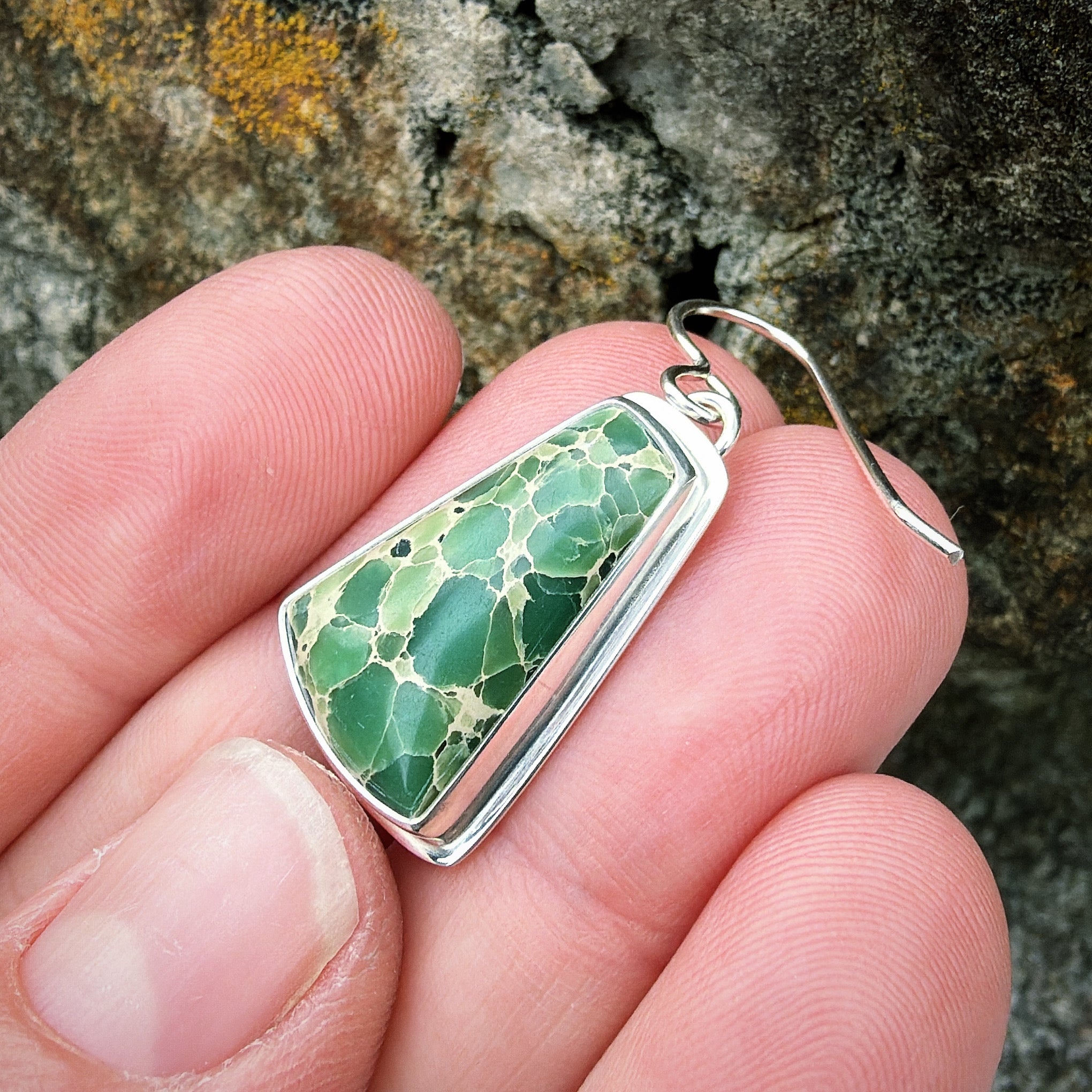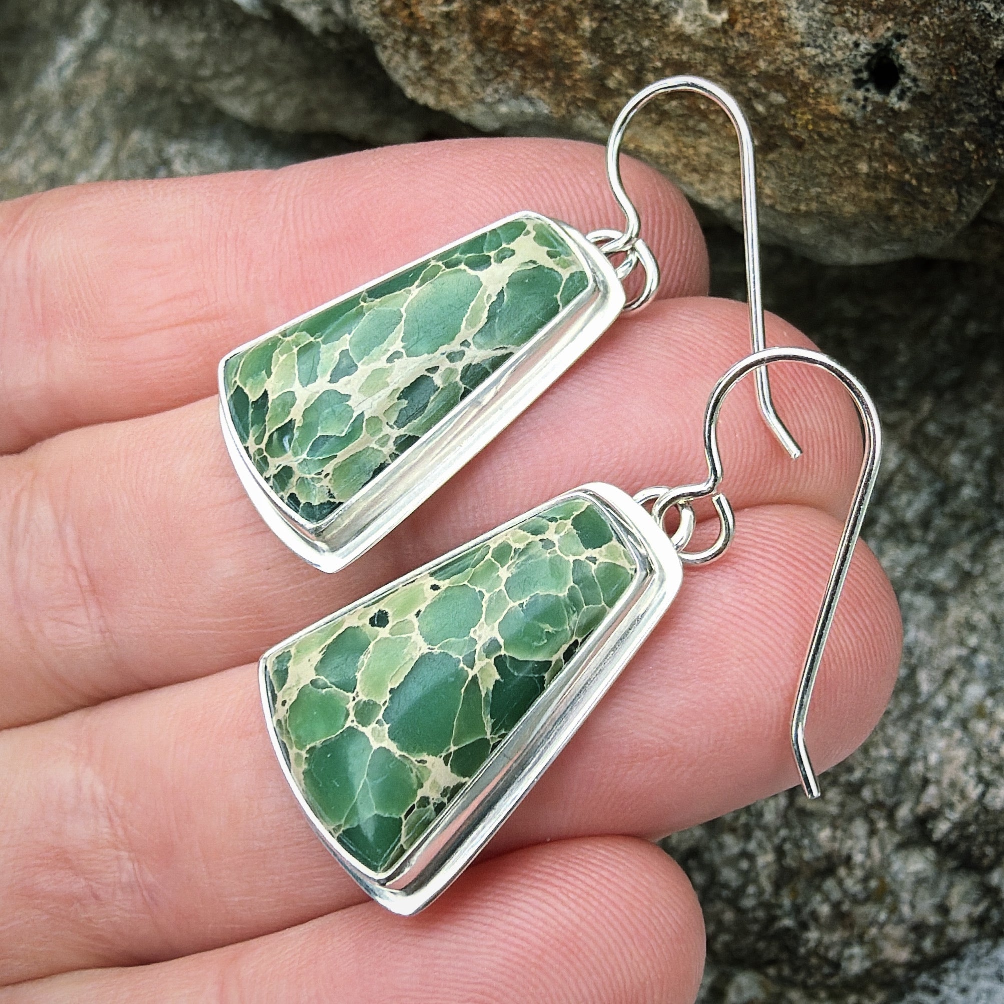 Variscite (China) and sterling silver earrings.  Approximate dimensions are 1" x 5/8"W (at widest end).