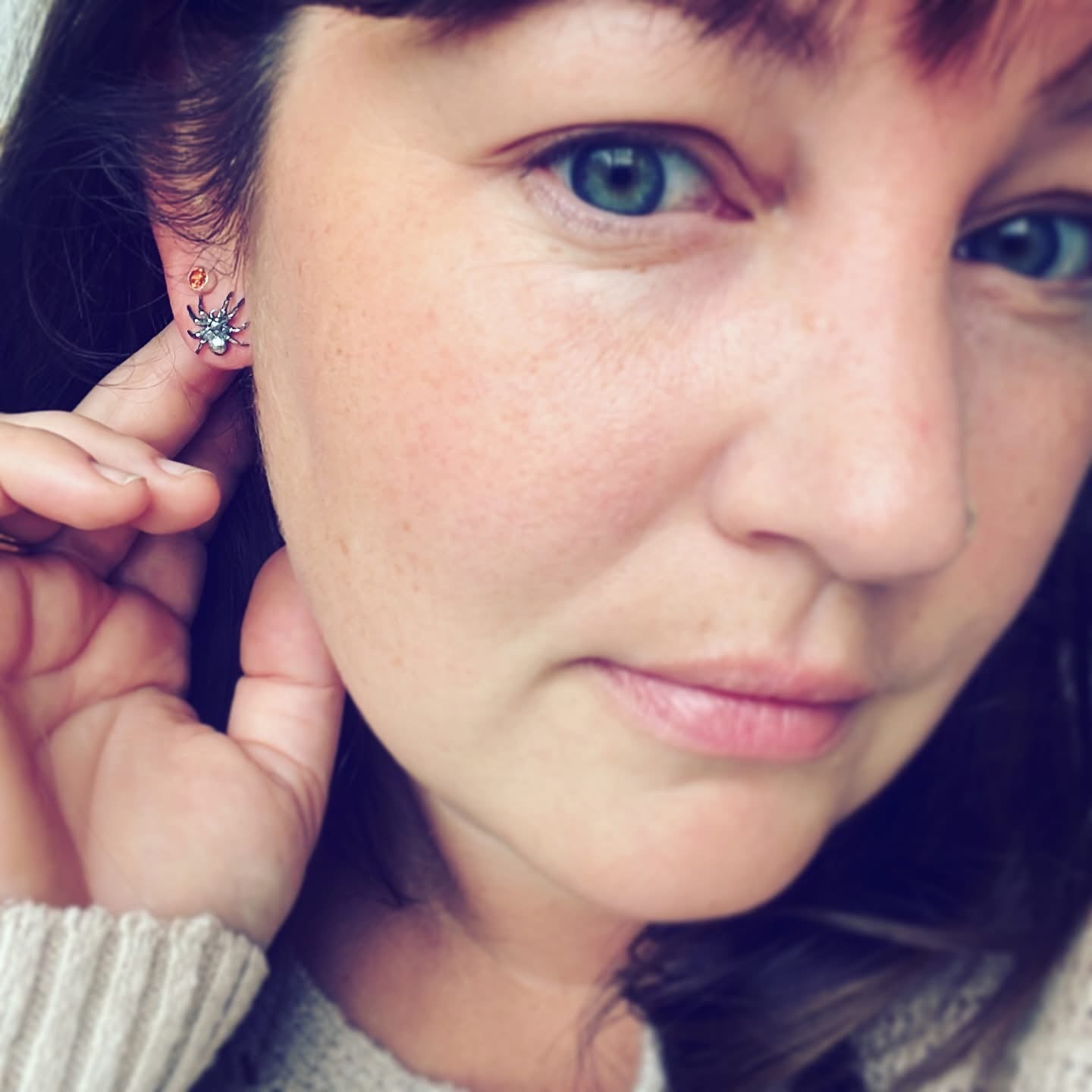Sterling silver cast tarantula post earrings.  Approximate dimensions are 1/2” x 1/2” with a 7/16”l post.